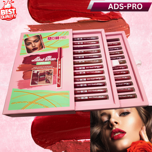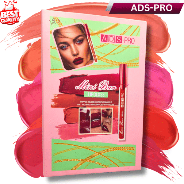 Elevate your beauty routine with the ADS-PRO Mini Bar Lip Gloss , the perfect combination of luxury, comfort, and long-lasting color. Designed for every woman who loves to express her confidence and charm through makeup, this exclusive lipstick set by ADS-PRO is a must-have for your beauty collection. Whether you want a bold matte look or a soft glossy finish, this lipstick range offers the versatility and richness your lips deserve.
