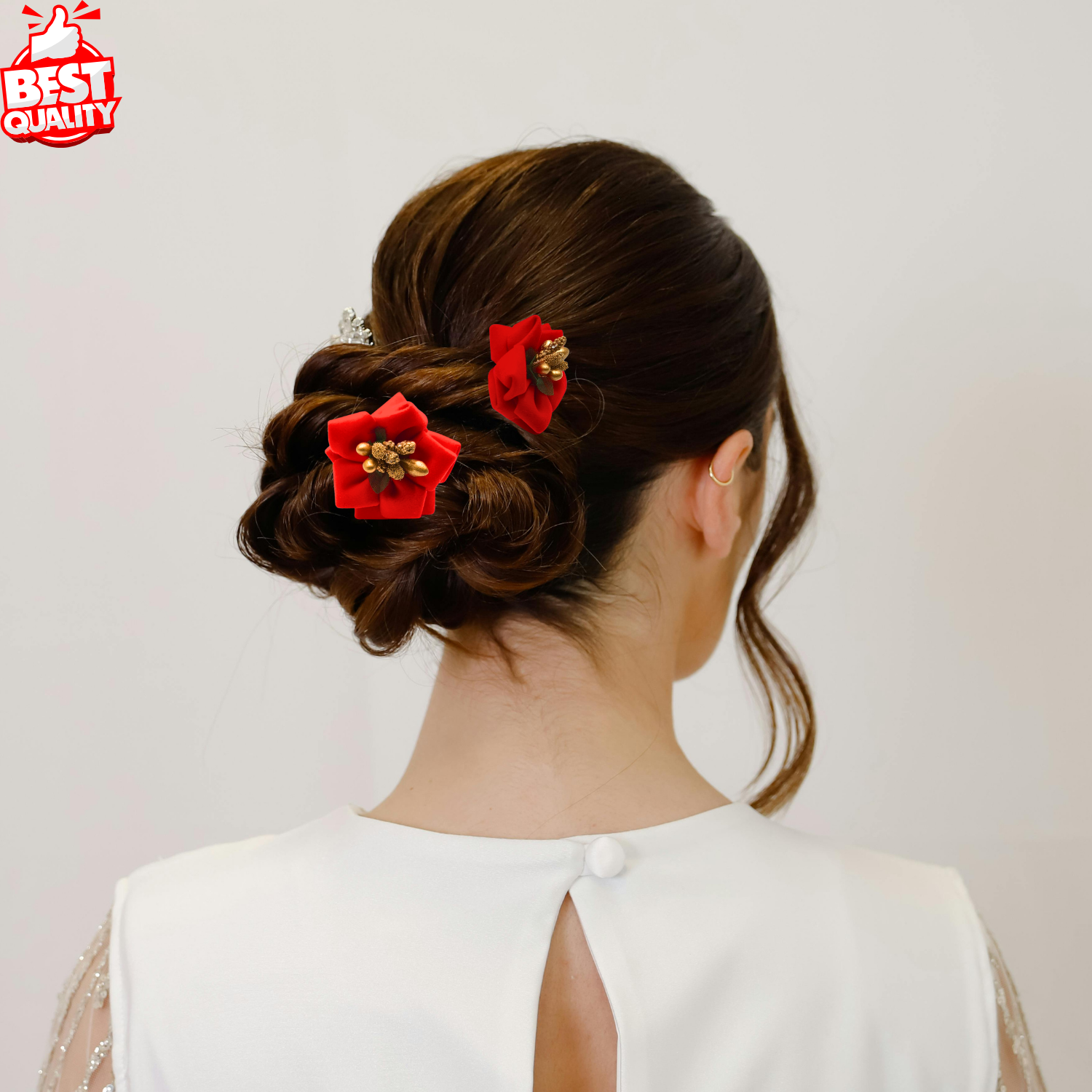 Perfect for weddings, bridal functions, festivals, parties, classical dance performances, and traditional ceremonies, this red rose golden juda pin adds a graceful floral touch that never goes out of fashion. Brides and bridesmaids can use it to create elegant bun hairstyles, while dancers can rely on its strong grip and secure hold during performances.