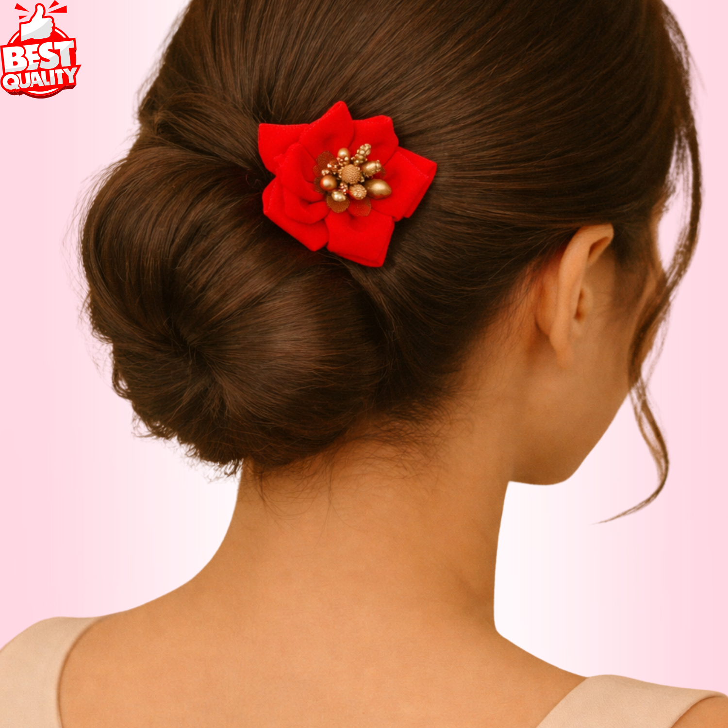 Bring home this Red Rose Juda Hair Pin / Bun Clip today and make every hairstyle look special with Sanaya Fashion.
