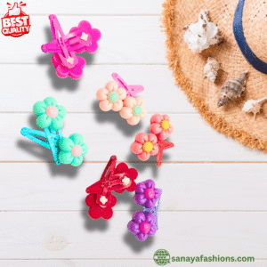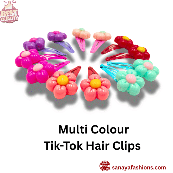 Brighten up your little girl’s everyday look with Sanaya Fashions’ Tik-Tok Hair Clips – a charming set of multi-colour floral clips that combine playful style with practical hair management. Perfectly crafted for kids, toddlers, and young girls, these adorable clips are designed to keep hair neat, tidy, and stylish all day long. Whether she’s getting ready for school, a party, or just playtime at home, these trendy Tik-Tok style hair clips are her go-to accessories for quick and easy hairstyling.